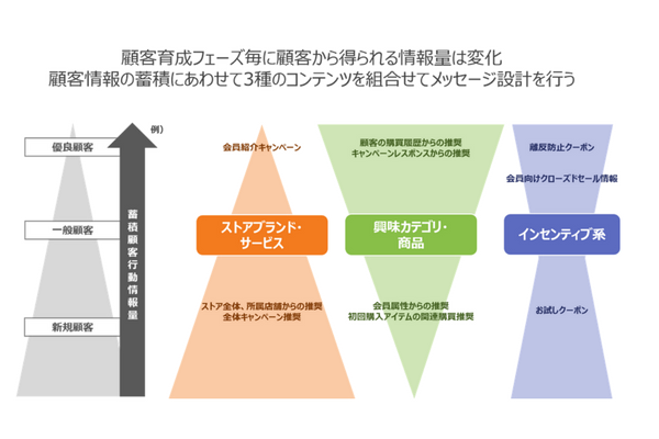 「一般顧客」や「優良顧客」にはストアの活動更新ベースのコンテンツ