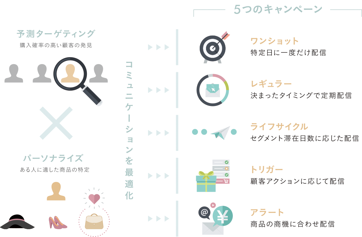 AI「機械学習」によって、お客様一人ひとりに”最適なタイミングや配信量”で、