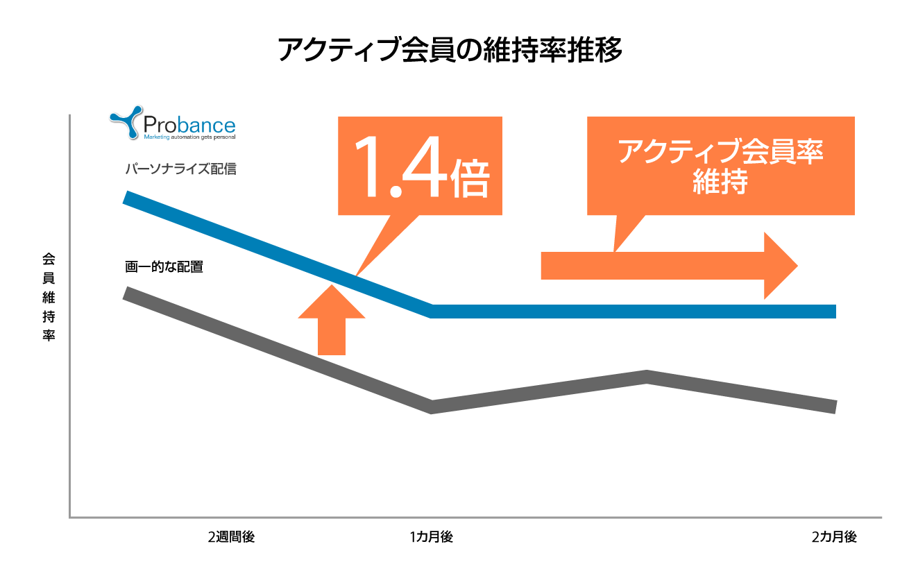 このように登録初期のモチベーションが高い状況での早期かつパーソナライズなアプローチを行うことで、アクティブ会員の維持率向上に成功しました。